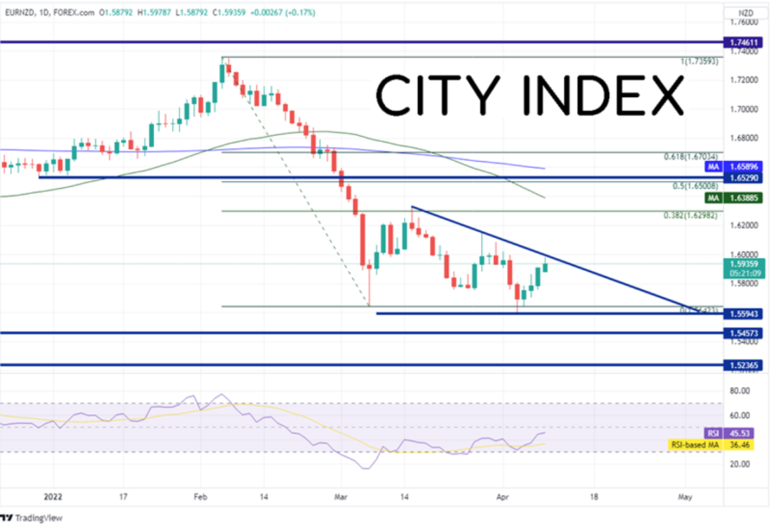 本周新西兰联储和欧洲央行都将召开会议,或导致欧元/纽元震荡。请关注两家央行,尤其是欧洲央行声明的措词,留意未来利率走向的线索。欧洲央行如果透露今年可能加息,或许强力推高欧元/纽元。而如果没有任何相关信息,则可能推低该货币对。