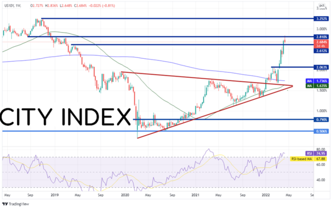 美债收益率本周在2.81%附近遇阻后回落,今天美元接力调头向下,很多美元货币对因此反其道而行之。请留意美元指数的支撑位,观察美元是否继续下跌。