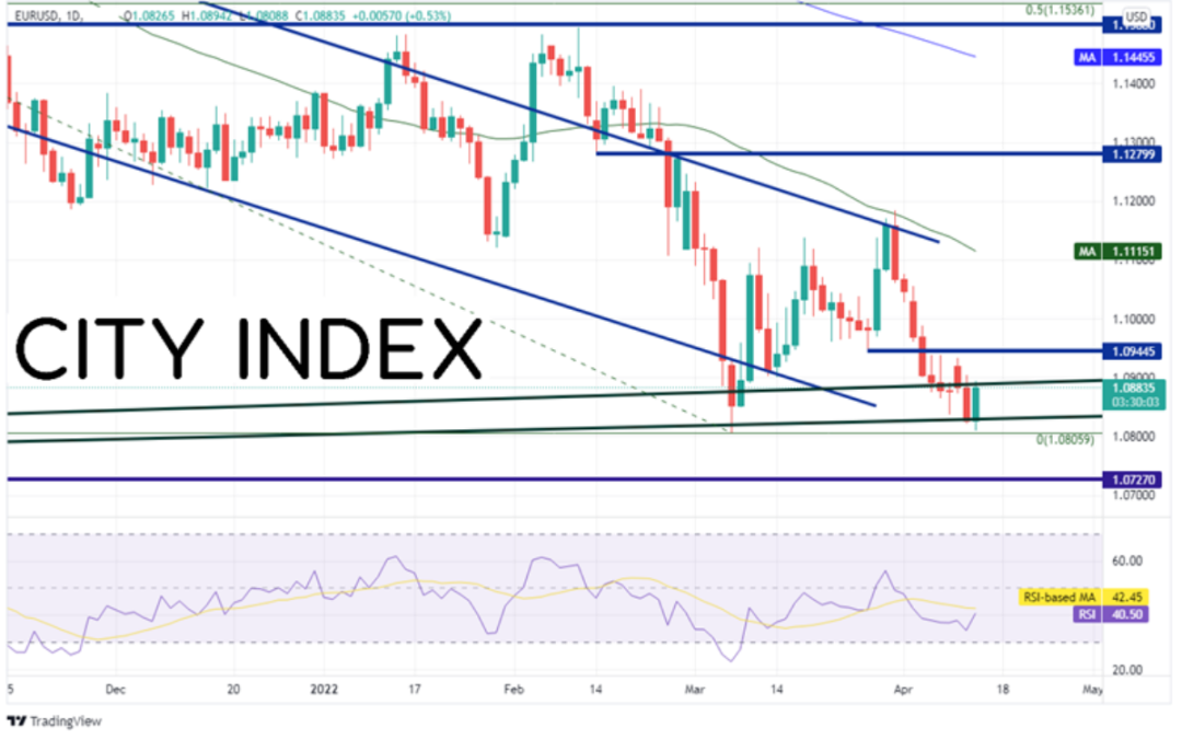 受美元自阻力回落的影响,部分美元指数同样从关键价位回调。欧元/美元止步于3月7日以来低点1.0805附近,今天在上涨,试图形成自己的看涨吞噬K线。昨天高点之上的阻力位落在1.0945,如果攻克,可以畅通无阻地涨至50天均线1.1115。
