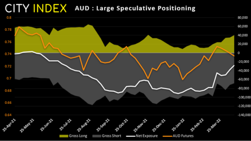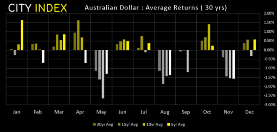 过去30年澳元在4月平均上涨0.95%并且在63.3%的时间里收高,但5月通常下跌,平均跌幅1.14%,并且有66.7%的时间里月图收阴。而澳元在今年4月已自高点下跌4%左右,似乎提前迎来了5月的颓势。但鉴于期货交易者在下探关键支撑位时增持多头,澳元至少有机会展开修正性反弹行情。