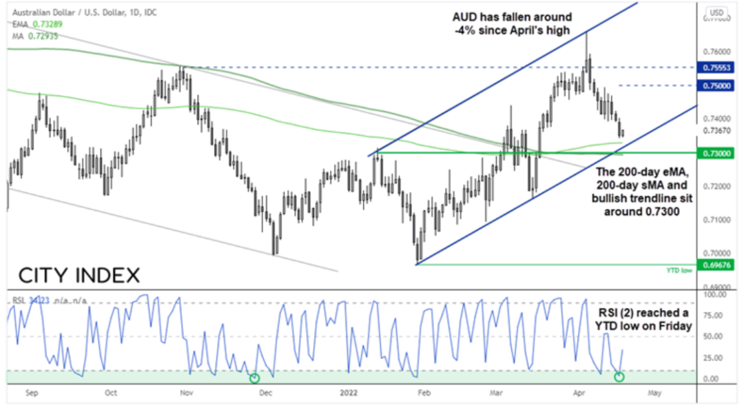 对于即将召开的5月澳洲联储会议,市场有所期待,但也已降温。市场目前仅计入22%的加息几率,而澳大利亚大选定于5月21日举行,一向避嫌政治的澳洲联储在那之前按部就班的可能性很高。