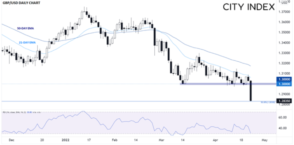 来看央行。美联储进入5月4日会议召开前的缄默期,压力也是与日俱增。我们最后听到的美联储评论来自美联储主席鲍威尔,他指出,“5月会议有加息50个基点的可能性”。而知名鹰派官员James Bullard拒绝排除下个月加息75个基点的可能性。