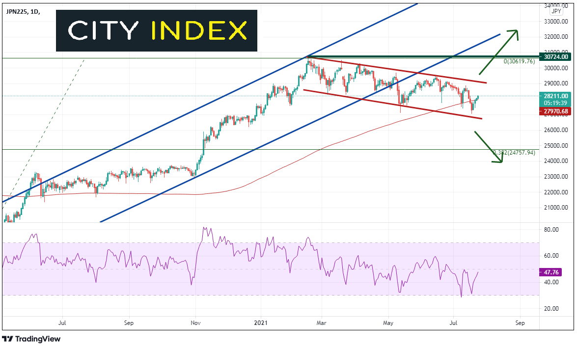 本文来自于嘉盛集团特别供稿,外汇及CFD交易可能会为您的投资带来机会与风险。 因为疫情而延迟了一年的2020夏季奥运会终于在上周五拉开帷幕,当时看台上的观众还不到1000人,此时承办城市东京受新冠病毒的影响,在未来一个月里都将处于紧急状态。参加奥运会的运动员有1.1多万,但只有不到一半参加了开幕式。对于这次姗