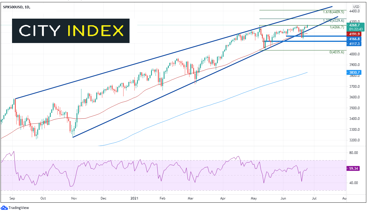 本文来自于嘉盛集团特别供稿,外汇及CFD交易可能会为您的投资带来机会与风险。 西得州原油上周触及两年半高点,目前将涨势延长到连续第五周。5月中旬以来,油价升幅逼近14%。 过去一个月油价暴涨。疫苗接种工作进展顺利,意味着新冠病毒病例数减少且疫情管控措施减少,继而改善燃料需求前景。即便立场强硬的美联储和上