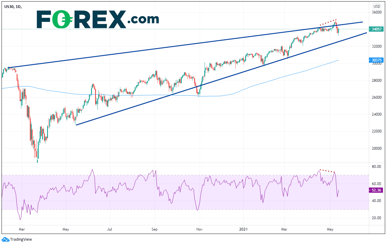 本文来自于嘉盛集团特别供稿,外汇及CFD交易可能会为您的投资带来机会与风险。 Facbook自低点回升 随着通胀担忧加剧,科技股承压,纳斯达克指数下跌约0.8%。 FAANG股遭遇抛售,但Facbook等公司股价现已自低点回升,并正展开上攻。 通胀关切持续困扰市场,投资者担心美联储可能被迫更早收紧支持措施。 科技股对通胀