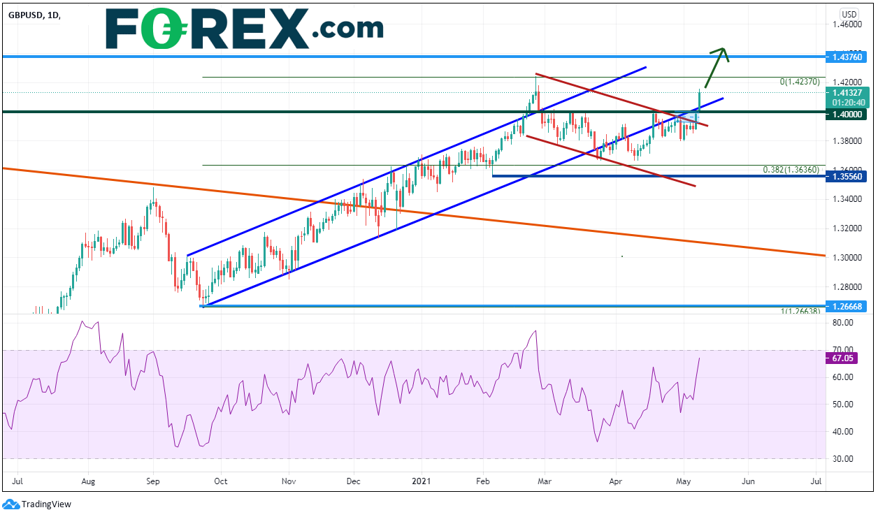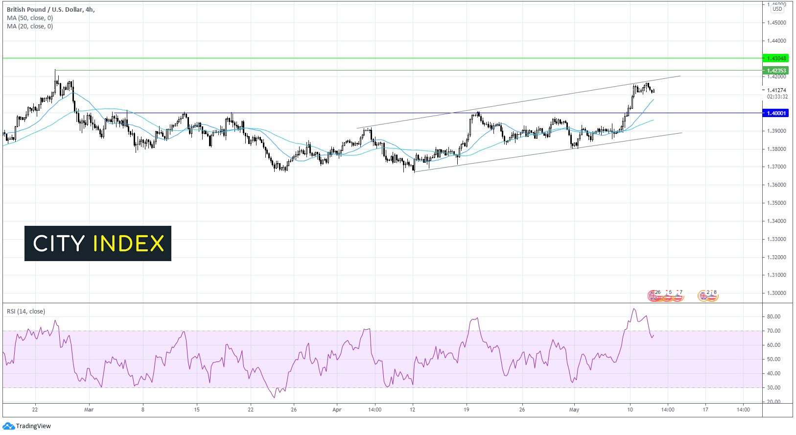 本文来自于嘉盛集团特别供稿,外汇及CFD交易可能会为您的投资带来机会与风险。 乐观GD数据发布后,英镑兑美元守住1.41,美国CI待发 英镑/美元在经过3天上涨后稍事休息,现自隔夜低点回升。 在封锁和英国脱欧背景下,英国GD季率下降1.5%,优于预期的-1.7%。随着英国经济准备重开,3月GD月率增长2.1%,高于预期的1.3%,