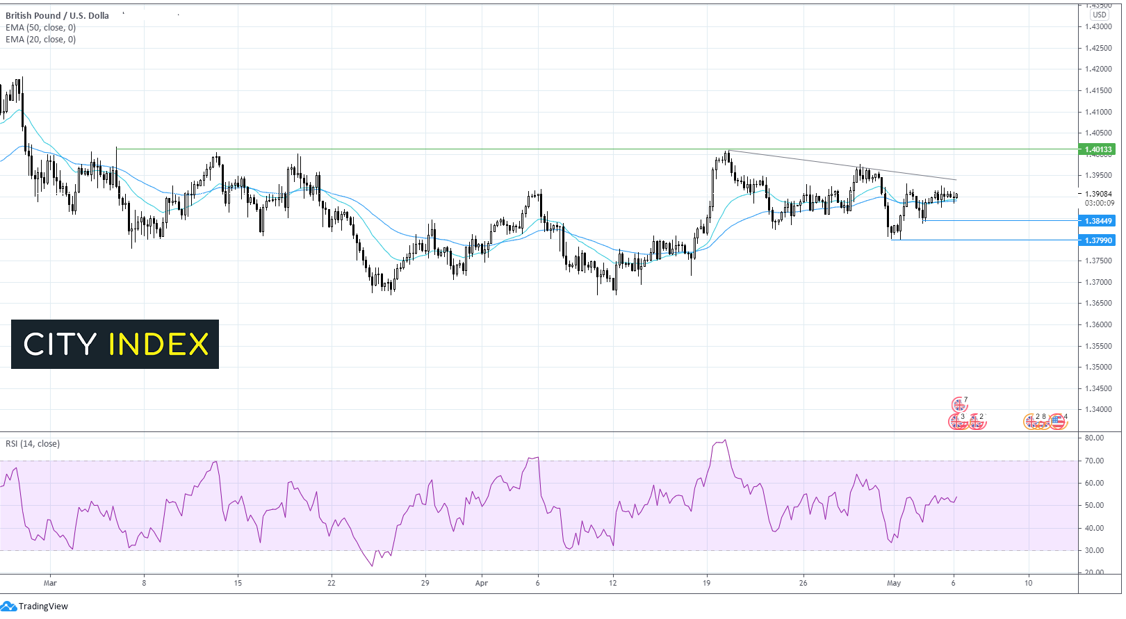 本文来自于嘉盛集团特别供稿,外汇及CFD交易可能会为您的投资带来机会与风险。 英镑/美元聚焦英央行和苏格兰选举 在数个关键风险事件启动前,英镑/美元企稳于1.39附近。 鲍里斯·约翰逊向泽西岛派遣两艘皇家海军巡逻舰,英法渔业争端不断升级 苏格兰选举带来的影响预计有限,不过市场将聚焦再次举行苏格兰独立公投的