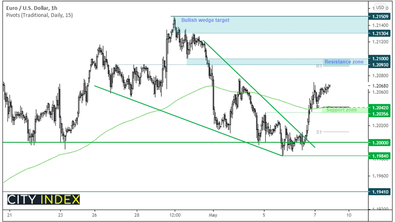 本文来自于嘉盛集团特别供稿,外汇及CFD交易可能会为您的投资带来机会与风险。 正如我们本周早前提到的,市场对周五非农报告预期高涨,随着美国在疫苗接种广泛推进的背景下经济逐步开放,我们有望8个月来首次迎来超100万新增就业。除整体就业强劲外,经济学家还预计失业率将降至5.8%,平均时薪将与上月持平。 上述预期