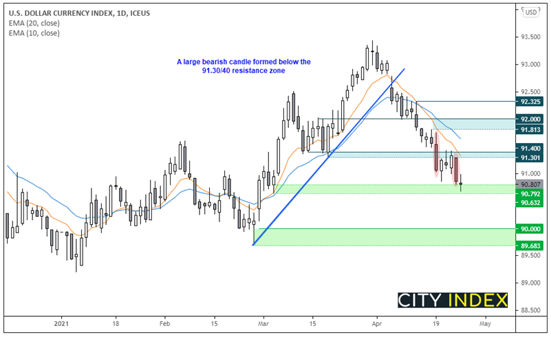 本文来自于嘉盛集团特别供稿,外汇及CFD交易可能会为您的投资带来机会与风险。 美元本周可能忙碌不堪。周三下午,FOC召开利率政策会议。当天晚上,拜登将在国会联席会议上发表讲话。另外,经济数据可能导致美元本周震荡。FAANG(除奈飞)也将在本周发布财报。预计鲍威尔及其同事本周做出大同小异的决策(请单击此处阅读