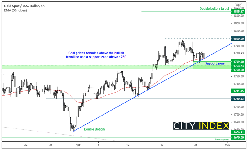 本文来自于嘉盛集团特别供稿,外汇及CFD交易可能会为您的投资带来机会与风险。 受强劲零售销售提振,英镑/美元测试50期指数移动均线构成的阻力 因为消费者展望英国经济活动的重启,零售销售显示支出增加。 3月零售销售月率增加5.4%,预期增1.5%,前值增2.1%。按年化看,3月零售销售增加7.2%,预期增3.5%,前值降3.6%