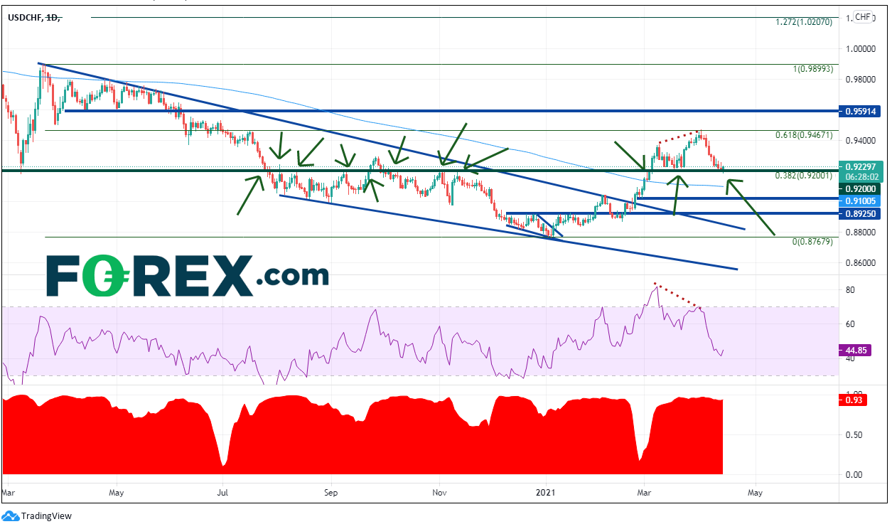 本文来自于嘉盛集团特别供稿,外汇及CFD交易可能会为您的投资带来机会与风险。 众所周知,美元指数(DXY)和美元/瑞郎之间存在正相关,而且相关性通常十分强劲。因此,当无法交投美元指数时,交易员有时会将美元/瑞郎作为其代理进行交易。除2月底一轮短暂走低外,这两种资产间的相关性在2021年大部分时间都高于+0.90。目