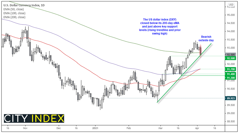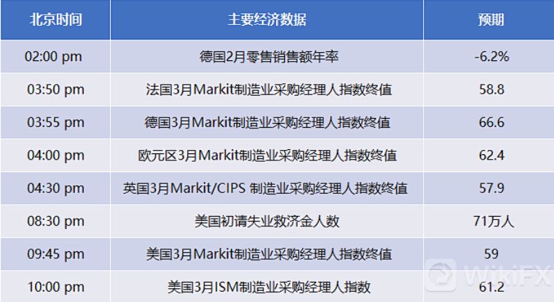 本文来自于嘉盛集团特别供稿,外汇及CFD交易可能会为您的投资带来机会与风险。 10年期美债收益率一度较14个月高位降逾6个基点,一季度仍累计升逾80个基点。纳指创近三周最大涨幅,特斯拉涨5%。标普IT板块领涨,金融和能源板块领跌。泛欧股指跌离13个月高位但连涨两月和四个季度,汽车板块一季度涨超20%。美元跌离四个多