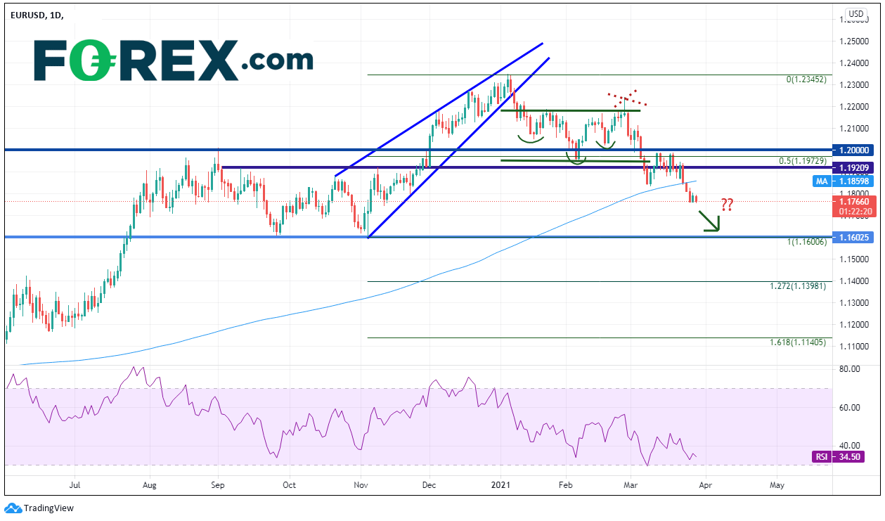 本文来自于嘉盛集团特别供稿,外汇及CFD交易可能会为您的投资带来机会与风险。 欧元/美元上周中前景看涨。当时,货币对触及1.2000附近数周高点,美联储刚发表了暗示2024年前仍不会加息的鸽派声明。 但此后,该全球交投最为广泛的货币对前景变天。 尽管昨天欧洲公布的I数据似乎优于预期,但在欧洲大陆疫苗接种进程仍举