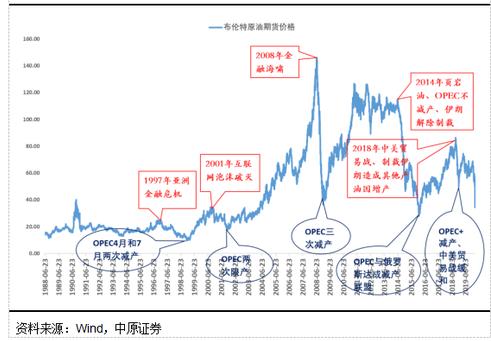 从历史上油价大跌的情况,主要的原因都是全球经济衰退或经济金融危机,原油需求出现明显的下降, 1997、2001、2008、2018年等都是这种情况。也有供应增加导致,比如2014-2016年。