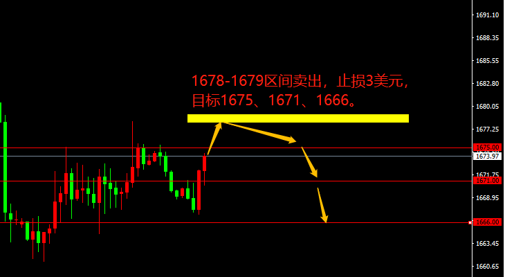 1678-1679区间卖出,止损3美元,目标1675、1671、1666。
