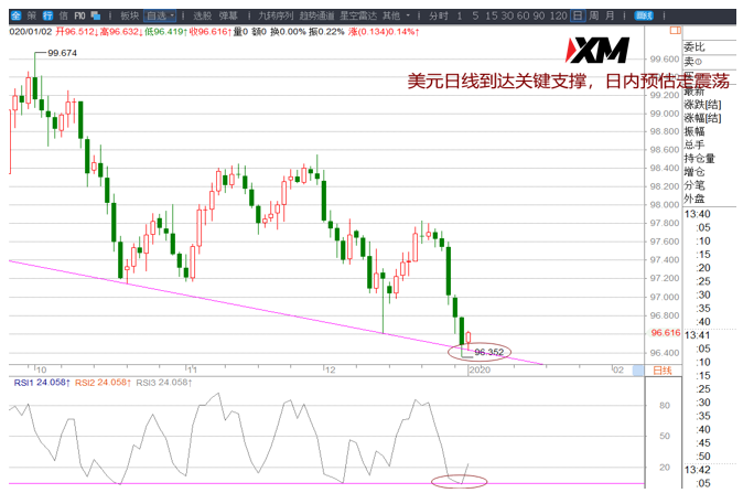 美元日内未跌破96.20一带,有短多机会,关注96.40/96.35支撑。