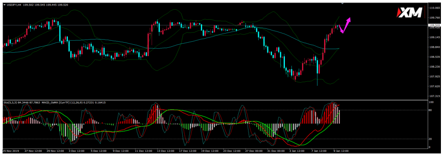 1H昨日回调至MA10一线多头增强,今日下方关注109.20-30一线支撑,短线震荡偏多,目标关注日线前阻力,突破方可延续。