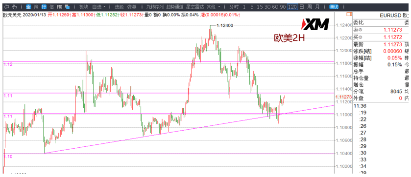 欧美短级别上周虚破趋势线收回,今日继续关注1.1105区域支撑,有效将有回踩低多的交易机会。