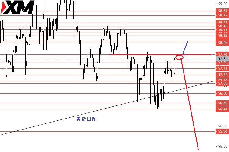 美指本周高位震荡,从图形来看,今日关注97.75-97.40区间行情,若成功上破,再关注上方98.10区域强阻力,月线收盘前,98.10是美指上行的极限区域,到位后承压的概率较大。若今日97.75再次承压下行,并下破97.40后,中线继续看跌,短线顶部也将出现。97.75不破中线看跌思路不变,保守者可等待成功跌破97.40后再进场做空,激进者操作建议:97.70区域做空,止损98.00,目标先看向97.40和97.25,成功下破后再看向更低。控制好总止损金额,严格止损。