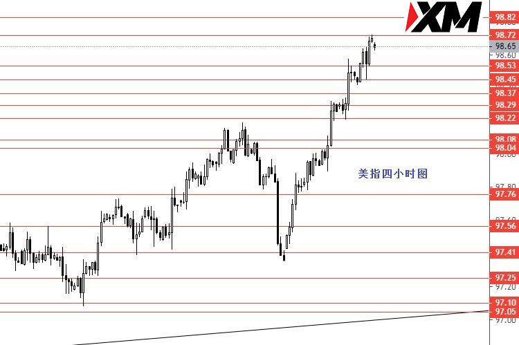 美指上周成功上破98.10后继续上行,周四回踩98.20继续上行,最高98.70,周图收阳柱。从图形来看,美指相对比较如势,本周在98.20没下破前,盘整后继续向上的概率稍微大些;若98.80区域承压下行,并跌破98.20后,美指则继续下行。由于美指快要接近98.80区域,今日无操作建议,观望等待一下再看情况而定。