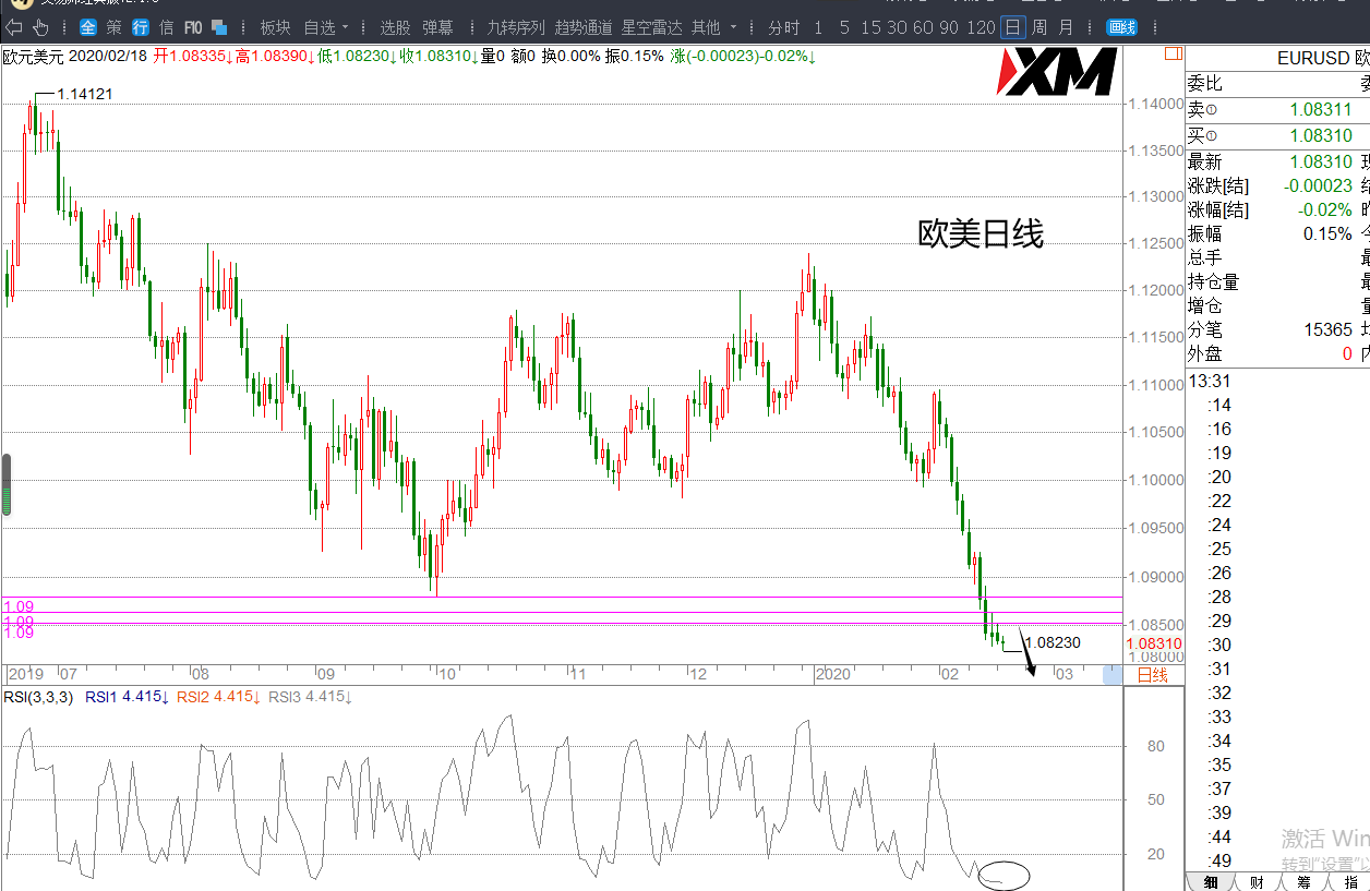 (2)欧美目前的下跌有出现减速情况,指标也在低位,日内若多头修复1.0865一线,警惕日线近期会出现反弹概率。