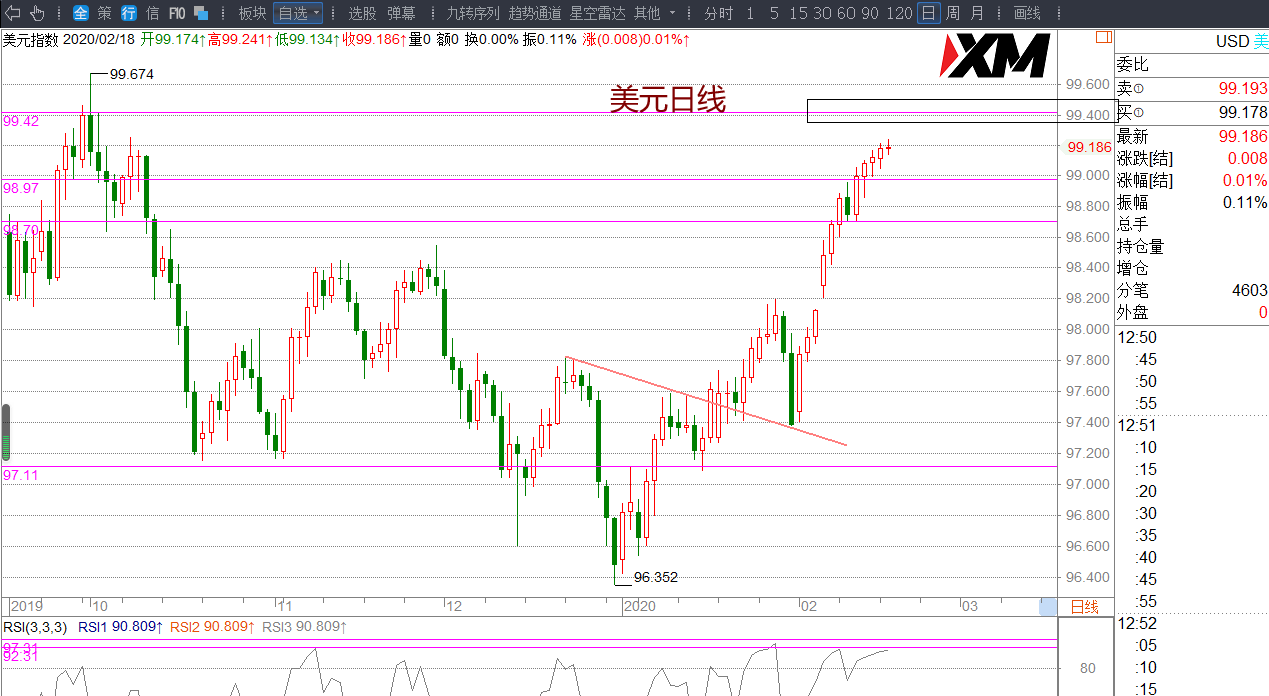 美元当前是单边多头运行,虽然指标高位,没有明显下跌之前,日内99.04上方保持低多思路,试多为主。