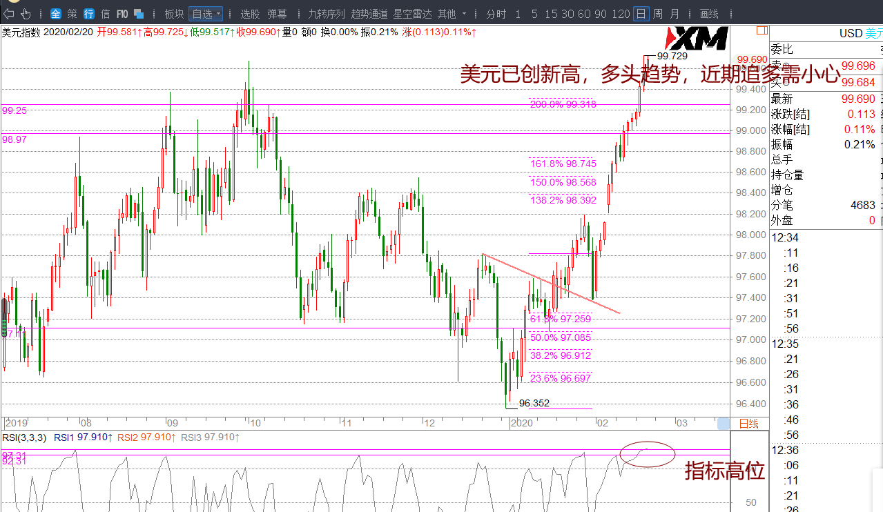 日内美元在99.37上维持单边多头运行,回踩99.47一带依然有短多机会,目标99.70-99.88.