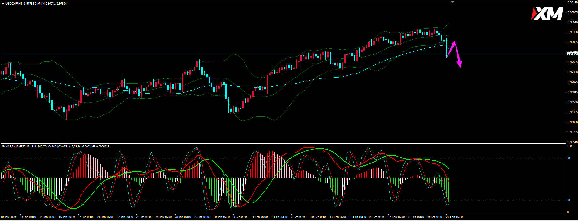 4H上周五下破0.9810一线转空,目前短期均线发散向下,MACD零轴附近死叉运行,短线技术性调整后有望维持震荡下行。