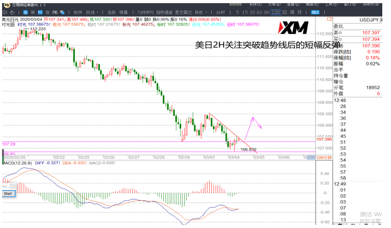 激进者美日日线在106.70附近有个关键支撑,日内目前低点在106.85,关注107.20/107一带低多机会,止损106.55,目标107.55-108-108.20(跌破106.85低点,则行情会继续回踩106.60或者106.35的支撑,放弃前面的多单)