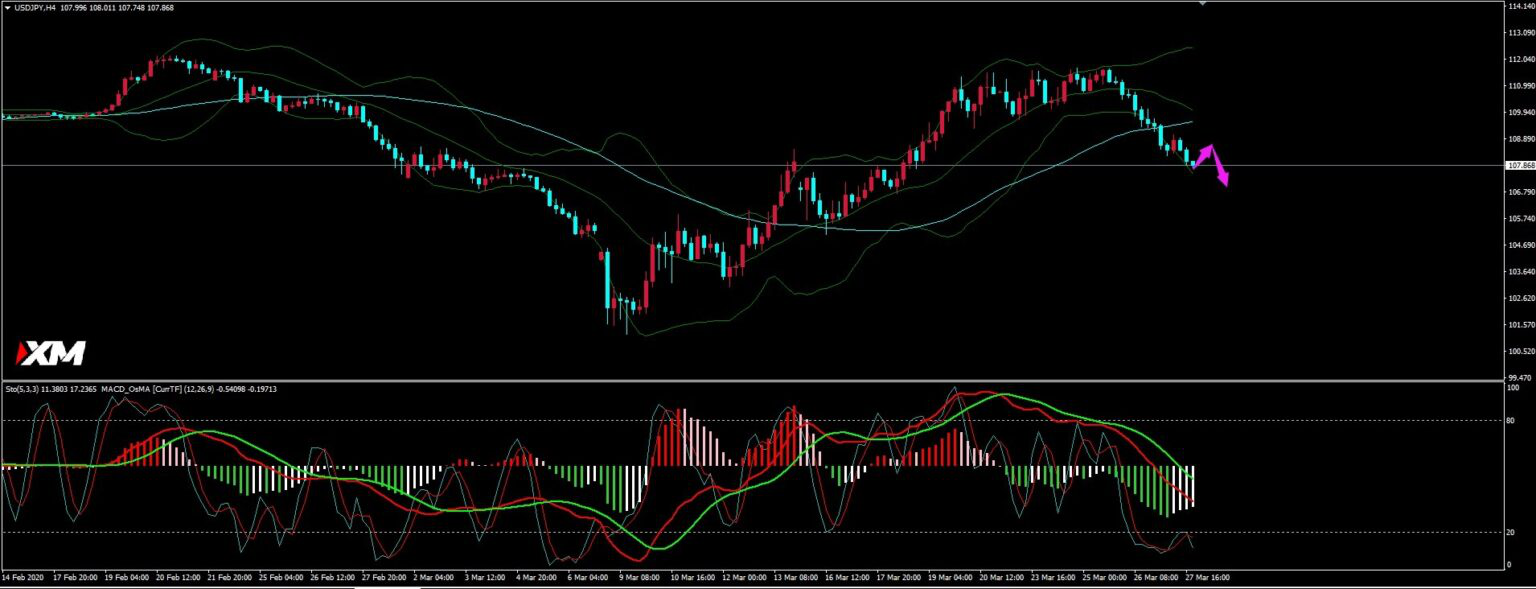 1H上周五触及MA10一线空头增强,今日上方关注108.50-60一线阻力,短线震荡偏空,目标关注日线前支撑,下破后方可延续。