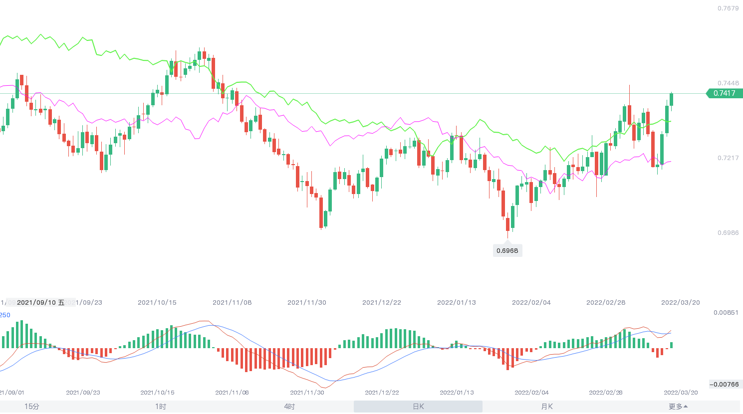 澳元周四反弹,乐观的国内数据推高债券收益率,使澳元兑低收益的日元触及2018年初以来高点,截至发稿,澳元/美元累计上涨1.14%至0.7377。数据显示,澳洲2月就业人口增加7.74万人,远远超过预测的3.7万,同时失业率降至14年来的最低点4.0%,接近1970年代初以来最低点。