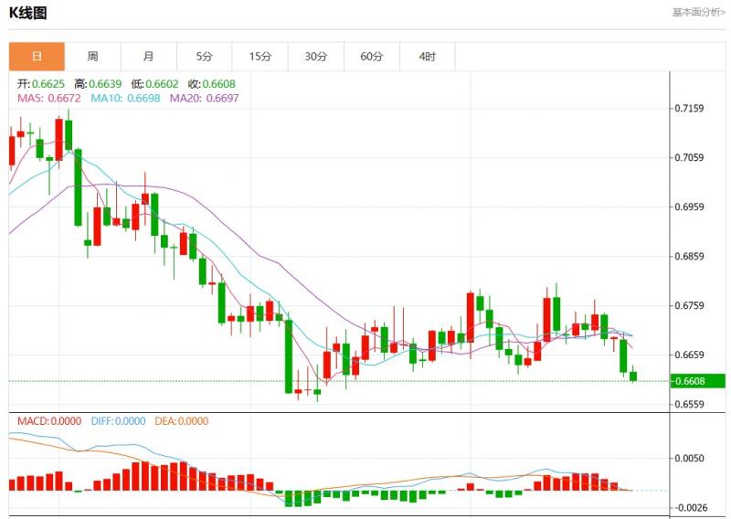 周三盘中,澳元美元报0.6608,跌幅0.28%。