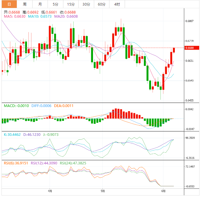 澳元基本面:澳元/美元在欧洲时段一直未能攀升至0.6680的直接阻力之上。儘管澳大利亚储备银行发表了鹰派评论,但澳元资产没有获得所需的势头。澳大利亚统计局报告了弱于预期的第一季度国内生产总值(GDP)数据。季度GDP增长了0.2%,而街道预计增长0.3%,比之前公佈的0.6%有所降低。按年计算,第一季度GDP增幅降至2.3%,而预期为2.4%,前次公佈为2.6%。