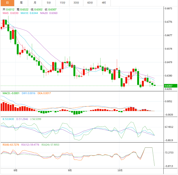 澳元技术面:澳元兑美元在0.6300附近结算,面临EMA50指数形成的持续负压力,在日内和短期基础上等待恢复预期的看跌趋势,其下一个目标位于0.6200。
