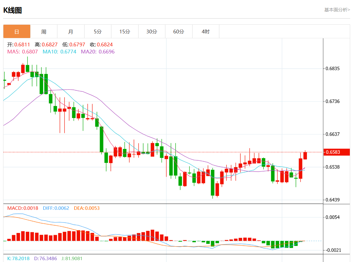 周四盘中,澳元/美元报0.6583,涨幅0.29%。