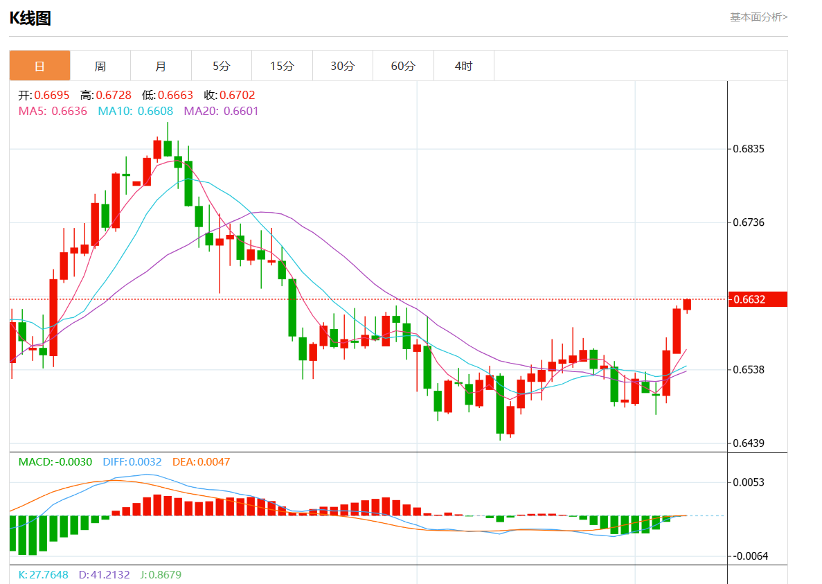 支撑位:0.6670 0.6655 0.6640