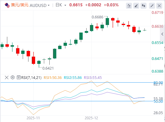 澳元/美元对测试九日均线均线0.6621。若向上升通道反弹,将重燃多头偏向,支撑货币对试探3个月高点0.6685,随后为0.6707,为2024年10月以来最高。下行方面,澳元兑美元汇率可能下跌至0.6500的心理水平,随后是8月21日录得的六个月低点0.6414。