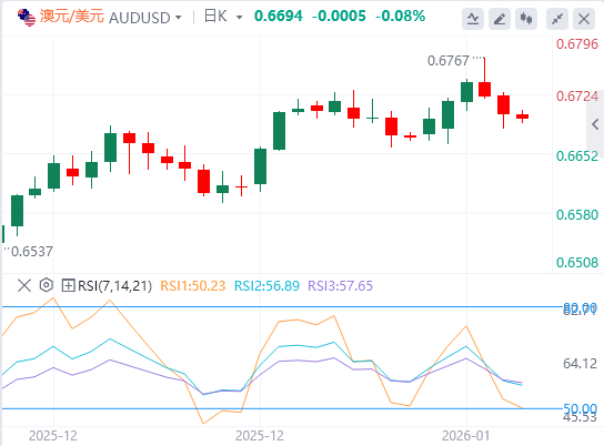 下行方面,若跌破下行通道边界,将使澳元/美元对试探50日均线0.6628。进一步下跌将开启至0.6414,为2025年6月以来最低。