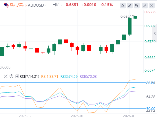 澳元/美元汇率也走强,美元因风险厌恶情绪增强而走弱,这可能归因于美格兰紧张局势。然而,在美国总统唐纳德·特朗普在与北约达成未来可能的格陵兰协议框架协议后,态度有所改善。