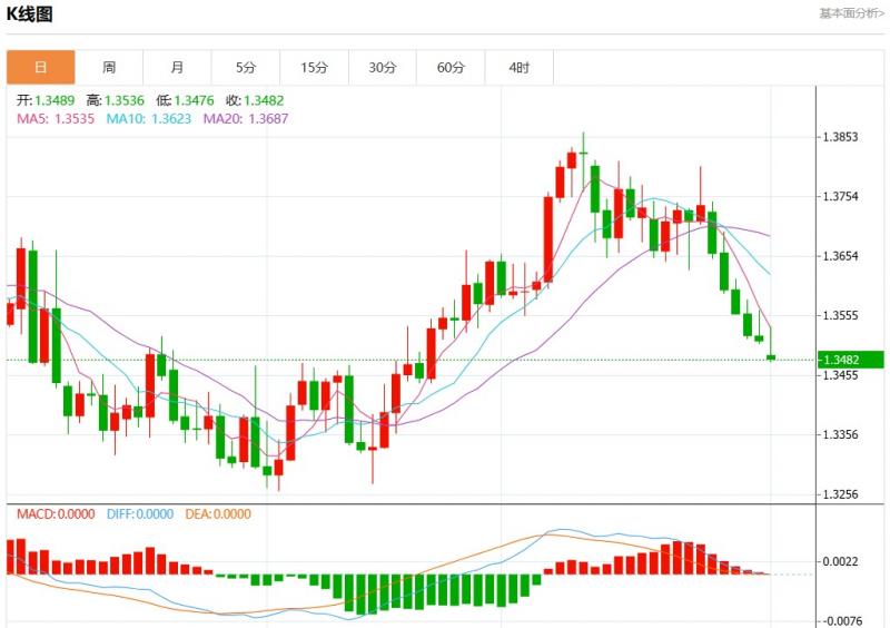 周一盘中,美元加元报1.3484,跌幅0.21%。