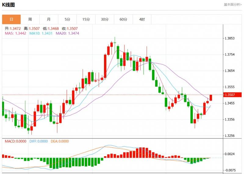 周五盘中,美元加元报1.3502,涨幅0.28%。