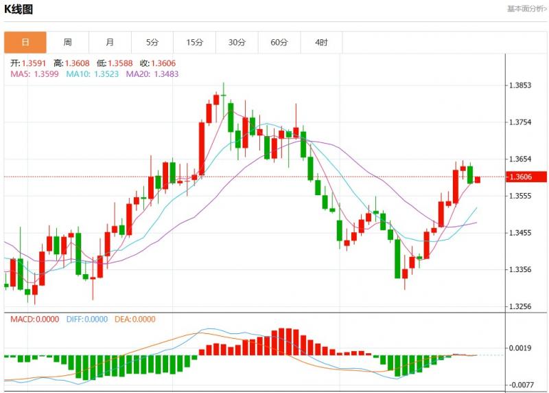 周五盘中,美元加元报1.3606,涨幅0.13%。