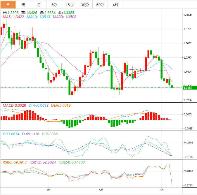 加元基本面:美元/加元在数日低点收窄近期跌势,反映了加元交易员的谨慎情绪。该货币对仍在一个月最低位承压,即便近期反弹至1.3405附近。除了加央行决议前的盘整,一周前的看跌通道也令美元兑加元空头充满希望。