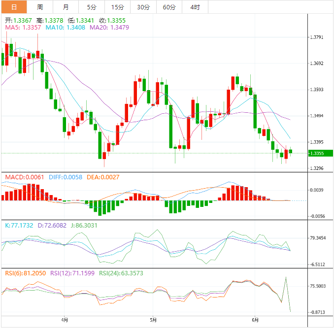 加元基本面:美元/加元回升至日内低点1.3365,以缩减日内跌幅。这样一来,在加拿大主要出口商品WTI原油价格低迷的情况下,卢比对努力为最新的美元疲软提供理由。也就是说,报价的最新不作为也可能与市场在美国通胀和美联储货币政策会议等顶级数据/事件之前的谨慎情绪有关。此前美国活动和就业线索的疲软,加上美联储会谈的不尽人意,让交易员对美国央行保持鸽派态度。 CME的FedWatch工具表明,美联储周三不採取行动的机率超过70%,同时表明7月加息0.25%的机率接近80%。