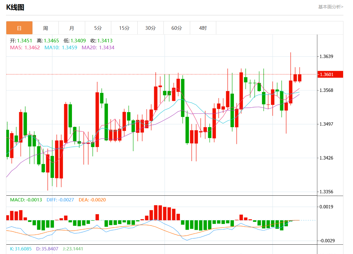 周一盘中,美元/加元报1.3595,涨幅0.05%。
