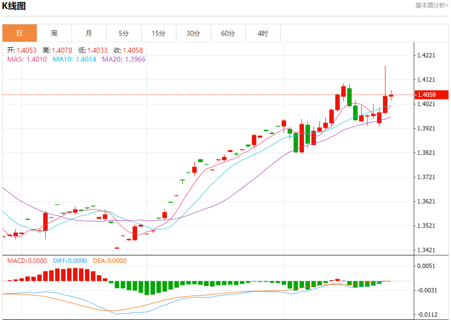 今天的预期交易区间在1.4000美元支撑位和1.4140美元阻力位之间
