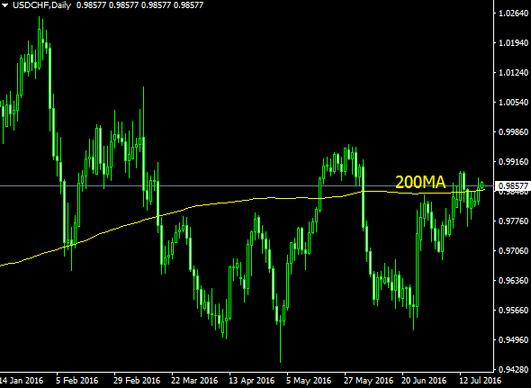 “美元/瑞郎在200日均线附近震荡,日图RSI指标的分歧暗示短期内倾向于震荡整理。”