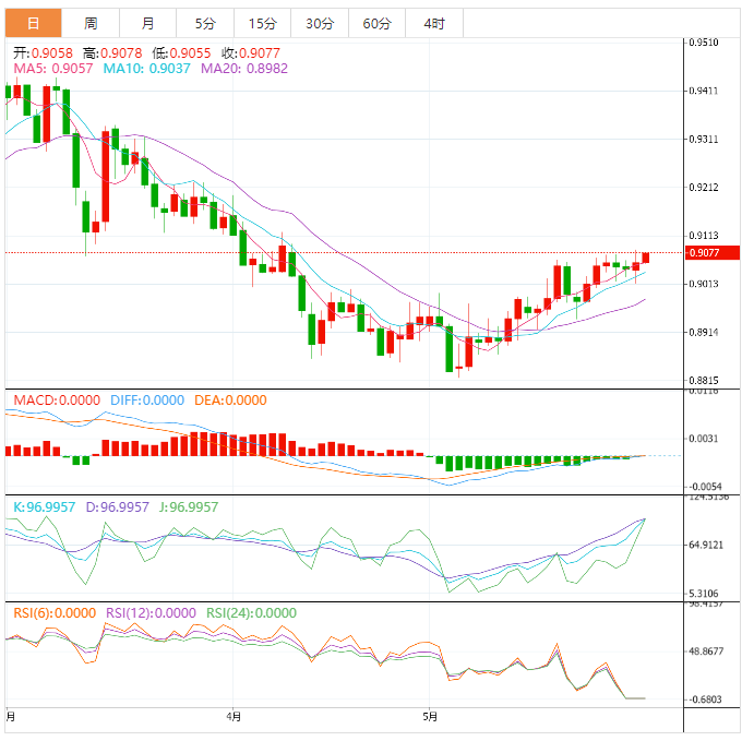 展望未来,如果决定性地突破5月30日高点0.9084的即时阻力位,将推动该资产向3月28日低点0.9137进发,随后是一轮阻力位0.9200。