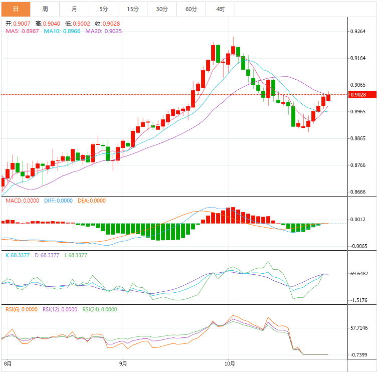 基本面上,美元兑瑞郎在0.9030附近徘徊。尽管美元表现不温不火,但美元兑瑞郎还是获得了上行支撑。此外,美国9月份核心个人消费支出价格指数(同比)下降3.7%,而8月份的数据为3.8%,这可能会限制美元兑瑞郎的涨势。