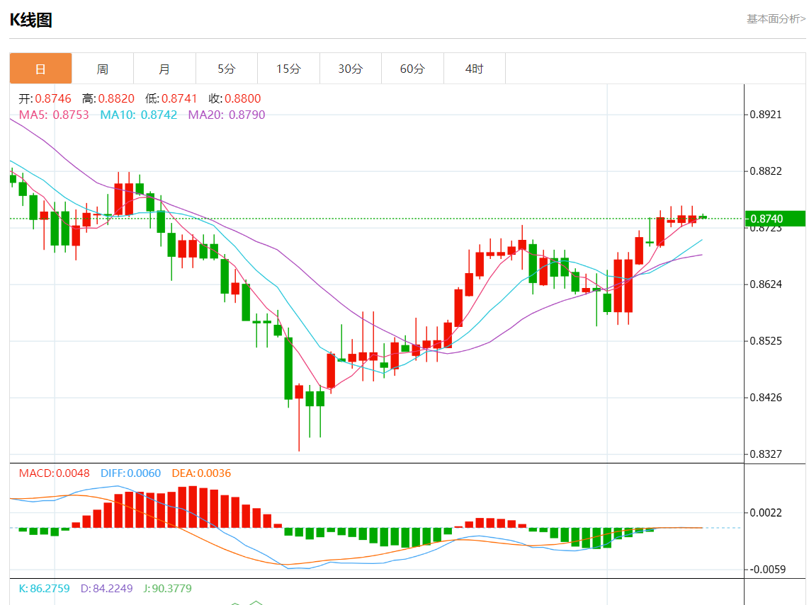 支撑位:0.8790   0.8775   0.8760